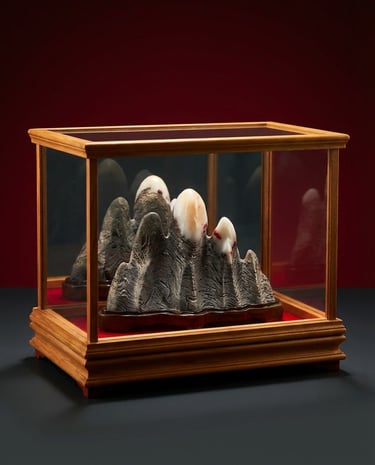 Carrying the same intention as 錢滾錢, this framed edition represents wealth in motion — prosperity that flows and builds over time.