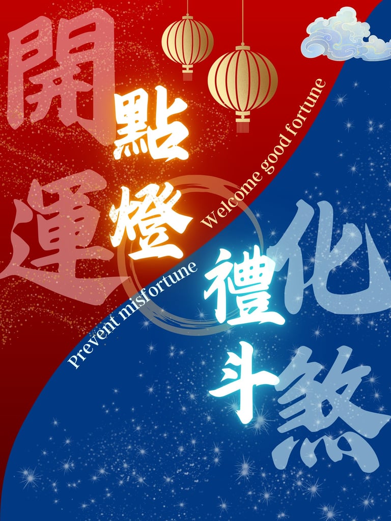 “點燈” as in "Lantern Lighting" symbolizes illumination - restoring clarity, strengthening one’s energy, and reinforcing what we may be lacking. “禮斗” as in the "Rite of Denunciation" refers to acknowledging the governing forces associated with life cycles and timing, with the intention of stabilizing one’s path and minimizing unnecessary disruptions.