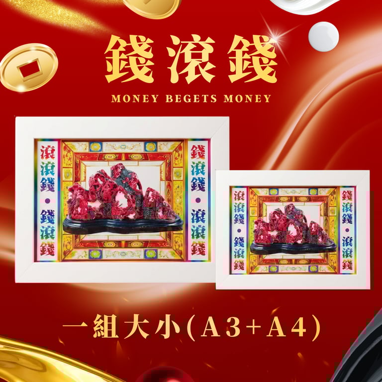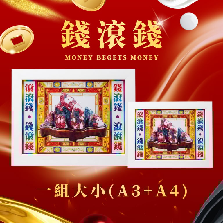 Through the traditional Chinese principle of energetic transference (借遁 · jie dun), the essence of 錢滾錢 is placed into a frame, allowing it to integrate seamlessly into your home or workspace. It symbolizes financial momentum — money in circulation and opportunities arriving with continuity.